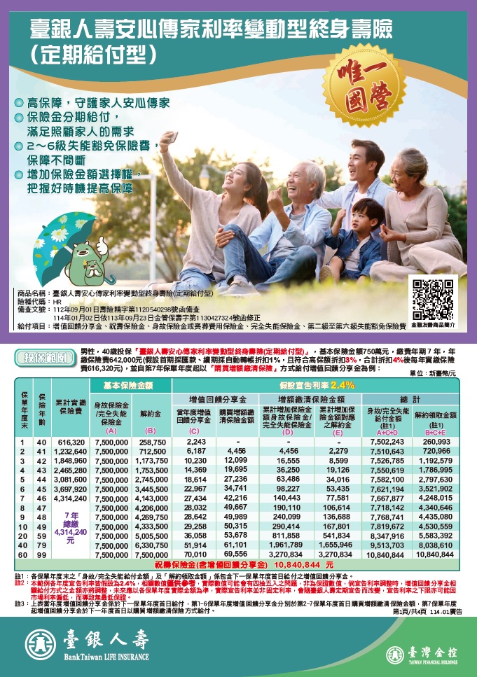 金永旺利率變動型終身壽險(定期給付型)