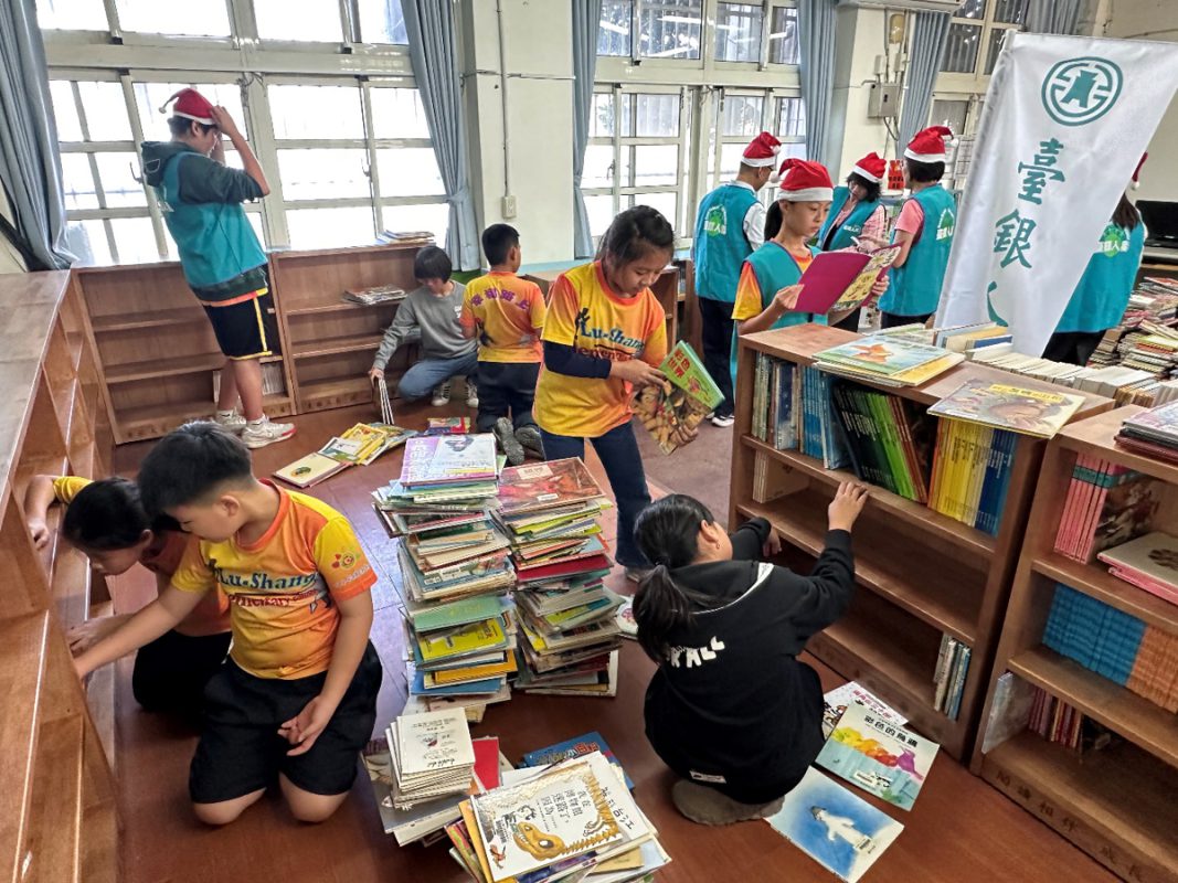 臺銀人壽台中分公司同仁與師生一起整理圖書館。