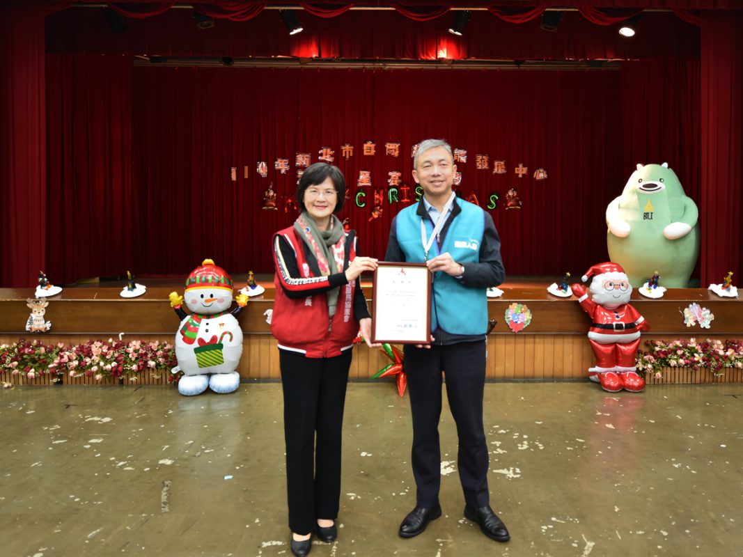 臺銀人壽主任秘書劉禹政(右)接受新北市自閉症服務協進會理事長劉郁純(左)致贈之感謝狀。