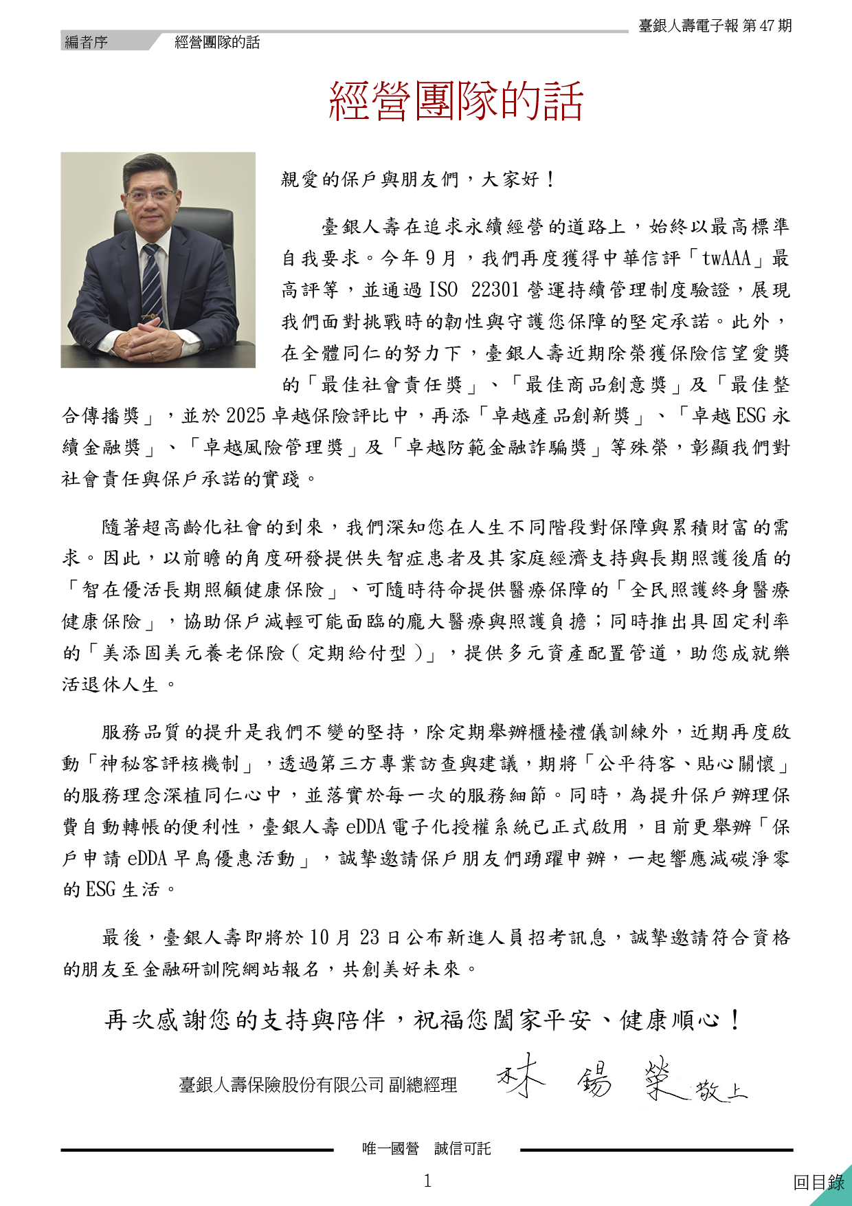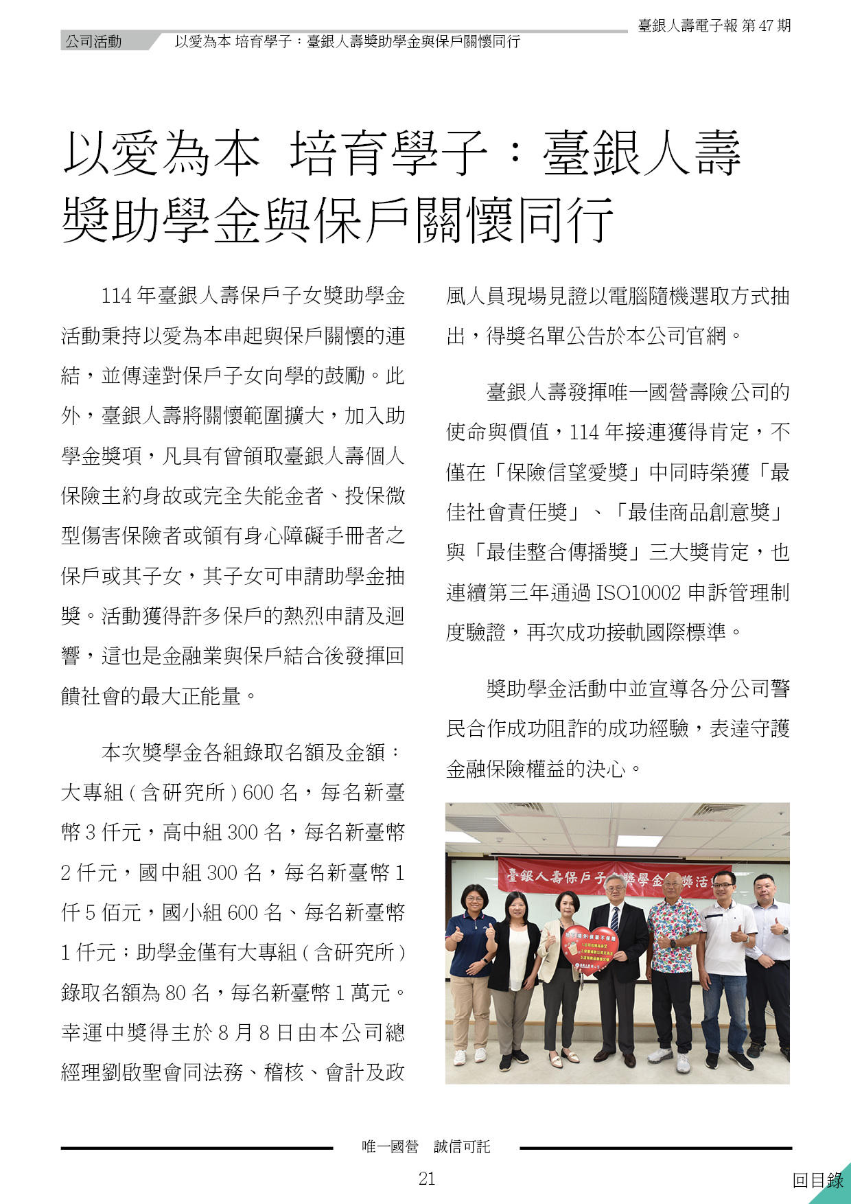 以愛為本 培育學子:臺銀人壽獎助學金與保戶關懷同行 | 21 |