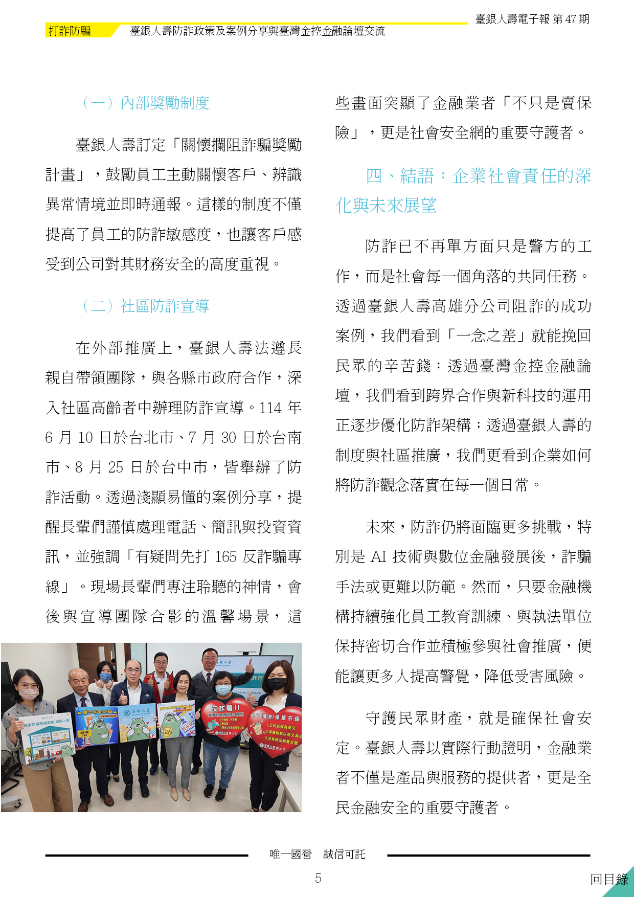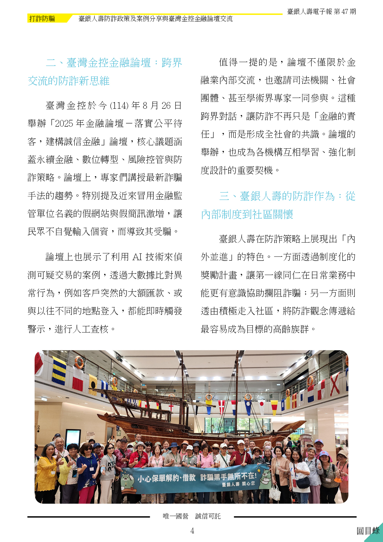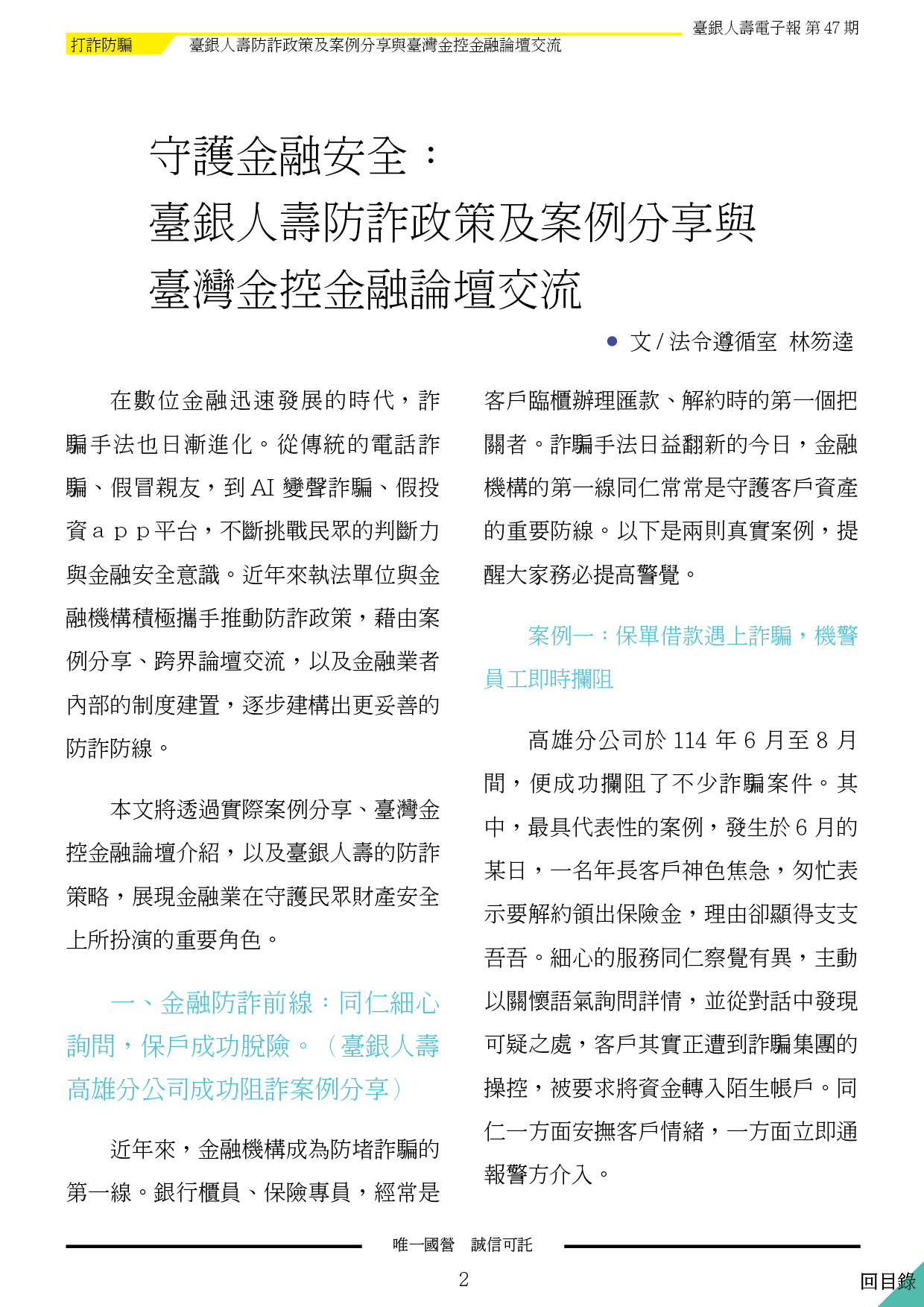 臺銀人壽防詐政策及案例分享與臺灣金控金融論壇交流 | 2 |