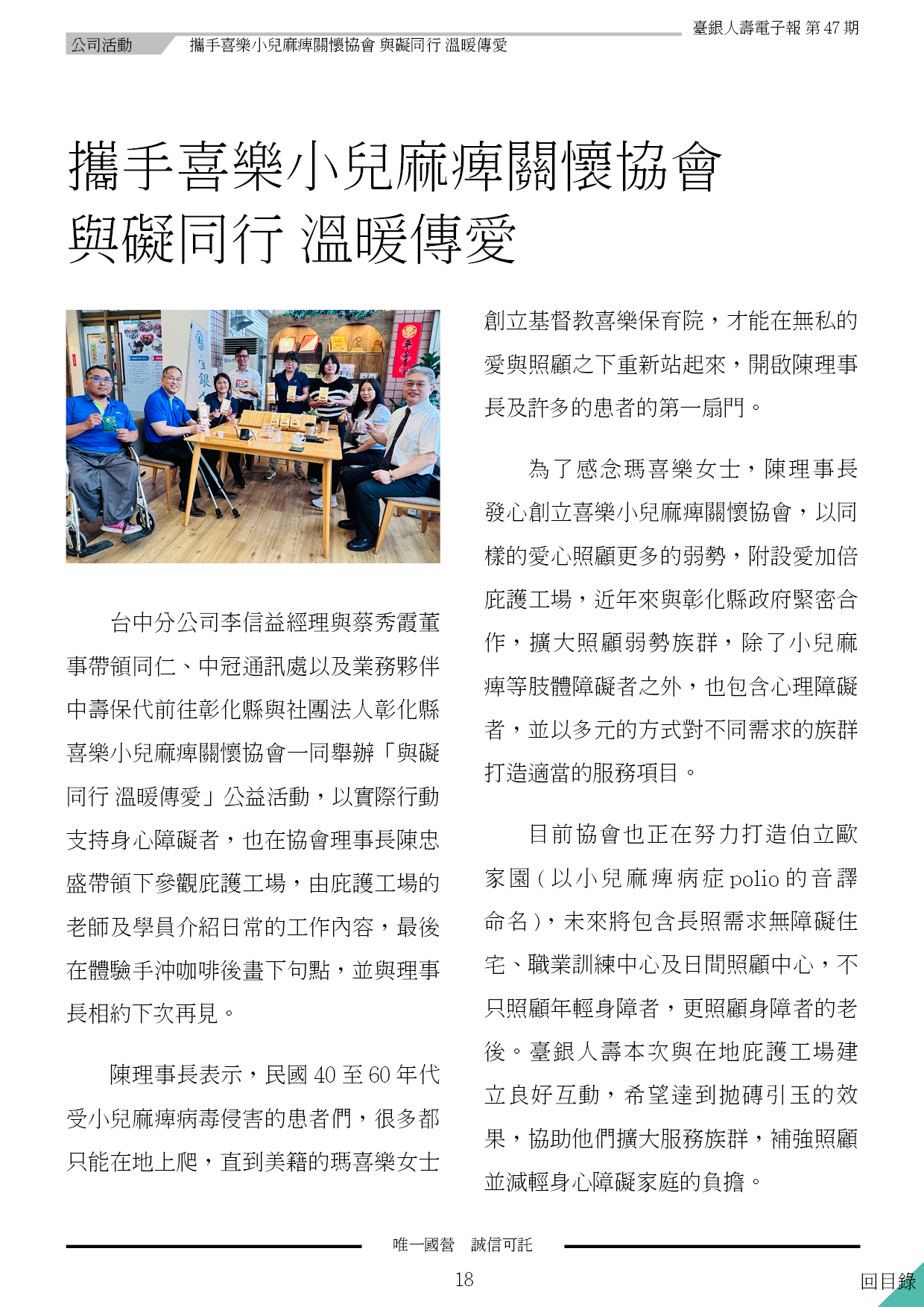 攜手喜樂小兒麻痺關懷協會 與礙同行 溫暖傳愛 | 18 |