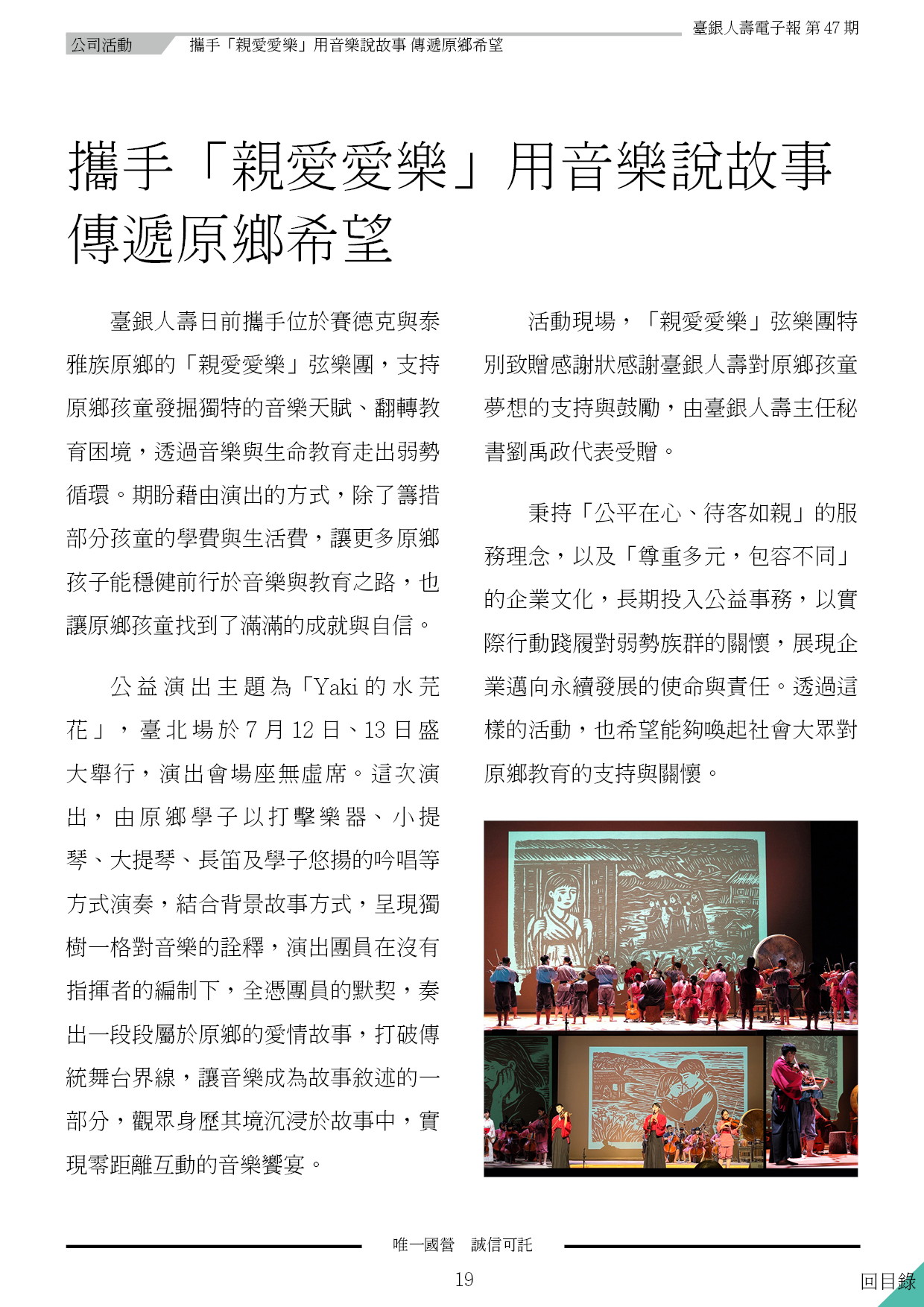 攜手「親愛愛樂」用音樂說故事 傳遞原鄉希望 | 19 |