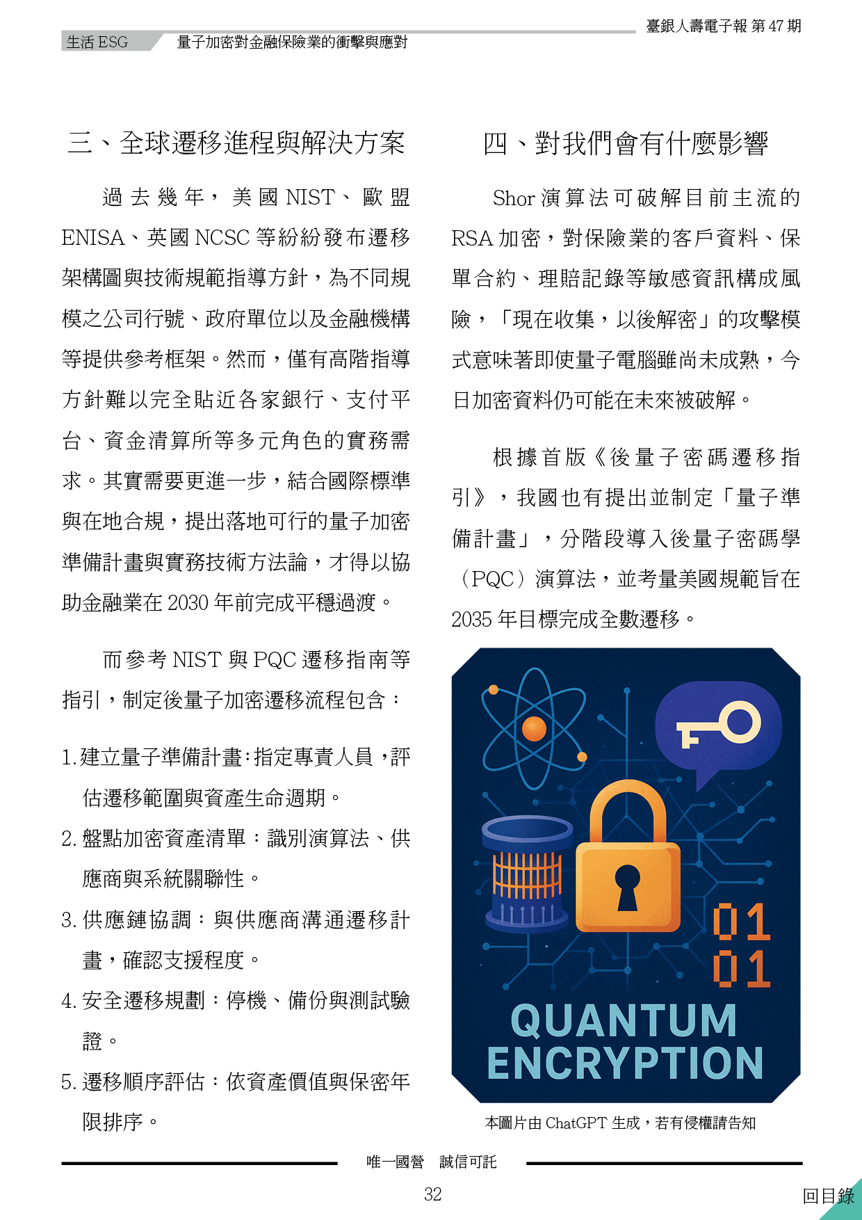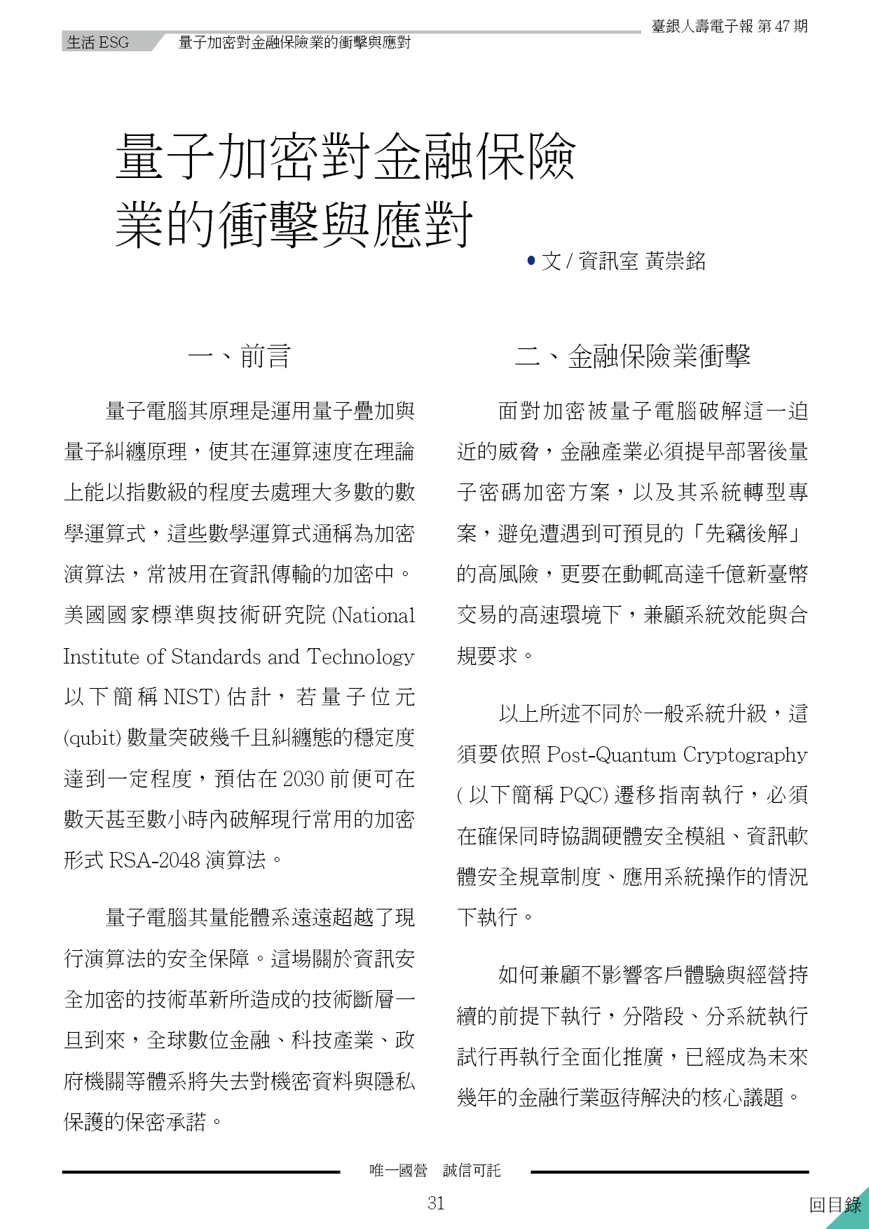 量子加密對金融保險業的衝擊與應對 | 31 |